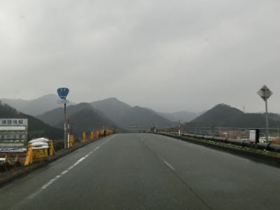 | 須佐大橋は橋長こそ313mと特に長大という訳ではないが、高さはかなりものである。橋を渡り終えると左にカーブして、程なくすると唐津パーキングを通過する。須佐大橋パーキングとは異なりこちらには公衆トイレや自販機、物産店がある。さらに緩やかな下り勾配の2車線道路を走っていると平田隧道をくぐる。 | ||