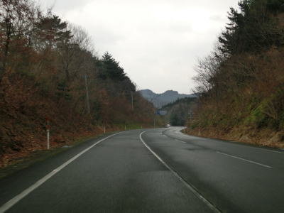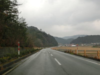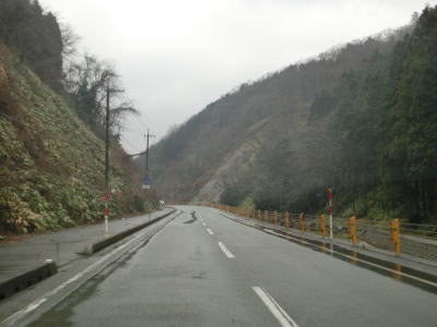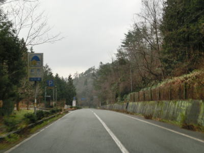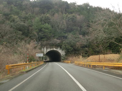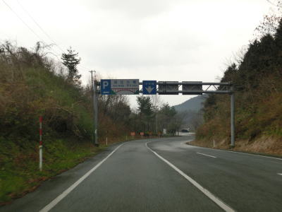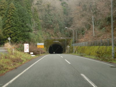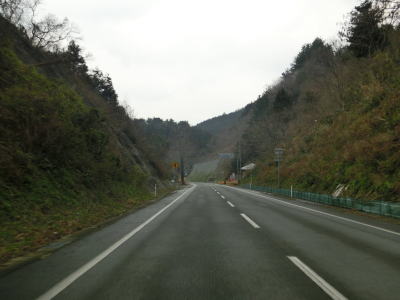 | 緩やかな勾配を上っていると割ヶ嶽トンネルをくぐって萩市に入る。割ヶ嶽トンネルの北と南にそれぞれ金谷峠と一升峠があるが、旧道に当たるのは北の金谷峠と思われる。萩市に入ってからは緩やかな勾配を下り、景色が開けて集落が見えてくるとさらに緩やかになる。 | ||