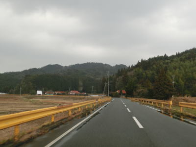 | 緩やかな下り勾配の2車線道路を走っていると道路を横切る跨道橋の下をくぐる。阿武北広域農道の長沢第一橋で、南のT字路に進む事で行き来ができる。跨道橋を過ぎると左右とやや急なカーブを曲がり、以降は田畑が広がるのどかな風景の中を走り抜ける。山口r10交差点を通過し、その後も淡々と2車線快走路を北へと進む。 | ||