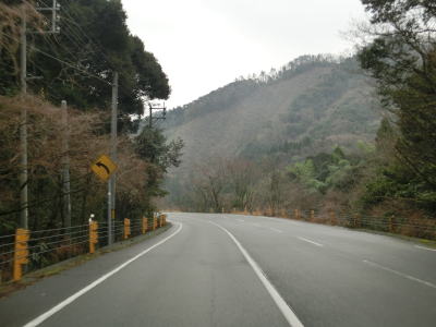 | 蛇行する阿武川を何度か渡りながらその流域を走る。勾配は非常に緩やかな上りで、カーブも緩やかなものが多いため非常に走りやすい道路状況である。山口r310交差点を通過して少し走ると谷筋に入り家屋が途切れる。しかしその谷筋区間も勾配が緩やかで走りやすい。山口r332交差点付近からは集落が現れて比較的開けた場所を走る。 | ||