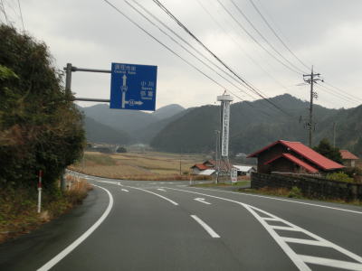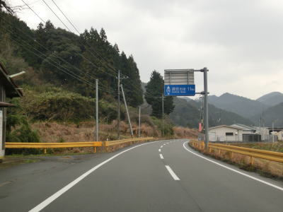 | 金谷峠からの道路(旧道?)との交差点を通過してすぐに山口r13交差点を通過する。交差点の北西には道の駅「うり坊の郷katamata」がある。r13交差点からも山裾を走る2車線快走路が続いており、緩やかな勾配を左にカーブしていると多覚山隧道を通過する。川沿いの道路が旧道だろうが沿線に田畑がありさらに奥の集落とR315を繋ぐ機能もあるため閉鎖されてない。 その後も交通量の少ない2車線快走路を走っていると阿武町に入る。なお、阿武町は平成の大合併によって三方を萩市に囲まれた状態になっている(残りの一方は日本海に面している)。 |
