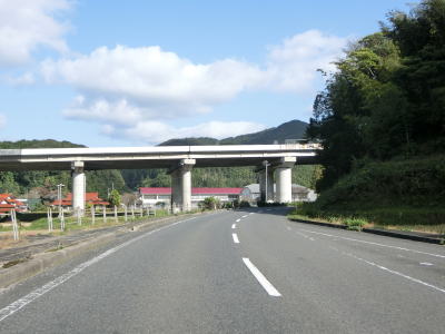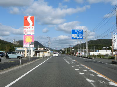 | 国行交差点から少し走ると美祢駅の東側の出入口に当たる交差点を通過する。右、左と緩やかなカーブを通過して北上していると山口r240曽根交差点を通過する。規模の小さな工業団地を通り過ぎると厚狭川沿いを走る。 | ||
