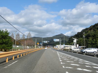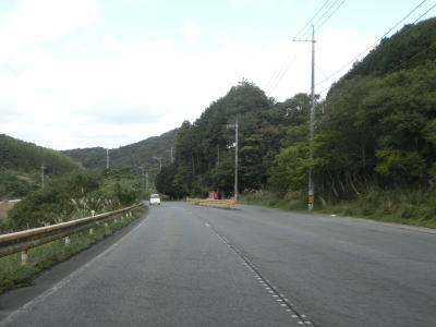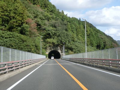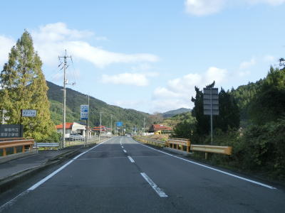 | 緩やかな勾配を上っていると大ヶ峠隧道をくぐって長門市に入る。大ヶ峠道路を出た直後の両側に駐車帯があり、そのうちの西側には小規模ながら物産店が建っており、東側にはトイレもある。大ヶ迫大橋で大地川とJR美祢線の上を通って大ヶ迫隧道をくぐる。 | ||