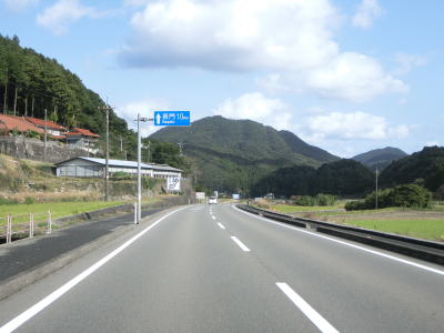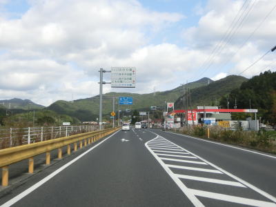 | 美祢隧道を出ると大きく右にカーブして緩やかな勾配を下る。雲海展望道路公園という駐車スペースを通過するが、そこから美祢市の市街地を一望できる。左にカーブしていると反対側車線の登坂車線が終わり、伊佐大橋を渡った先でR435国行交差点を通過する。 | ||