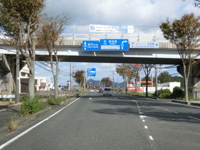 | R316を走り始めると緩やかな勾配を下った先で山陽新幹線の下を通る。1kmほど西に新幹線と在来線の厚狭駅が置かれている。緩やかなS字状のカーブの先で山口r225加藤交差点を通過する。交差しているr225はR2の旧道である。 | ||