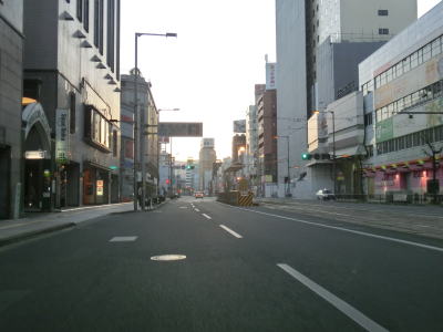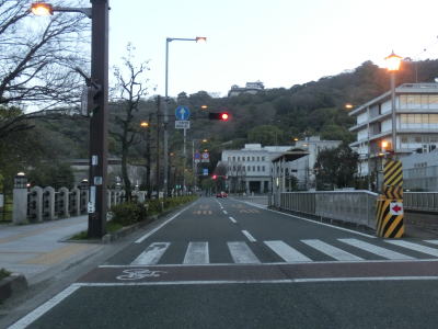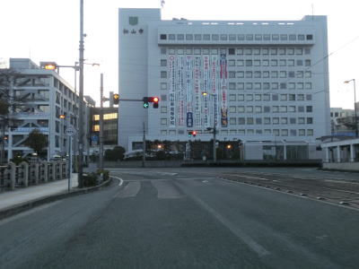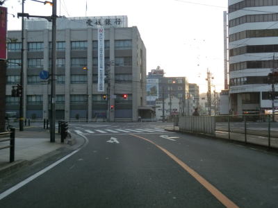 | 1.R11・R33・R56・R379・R440・R494松山市役所前交差点 | 2.伊予鉄道の市役所前電停 | 3.愛媛県庁の前を右に直角カーブ |