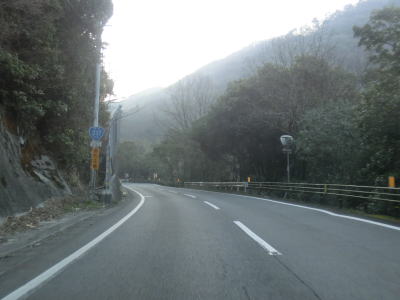 | 愛媛r40交差点からは勾配が急になり、周辺の風景も平野部から山間部の谷筋へと変化する。奥道後温泉や奥道後ロープウェイの奥道後山麓駅の前を通過する。その奥道後以降は集落が途切れて湧ヶ淵の谷筋を走る。とは言え2車線道路なので特に走りにくいという事はない。なお、湧ヶ淵トンネルの旧道や石手川ダムに至る道路が国道に指定されているようだが、案内標識等は設置されておらず普通に走っている分には旧道の存在を気にかける事はないだろう。 | ||