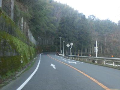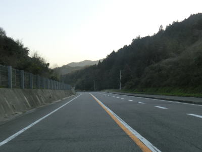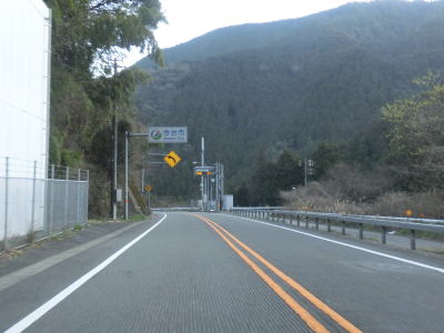 | 水ヶ峠トンネルを出ると今治市の市境標識を通過する。峠を越えたため下り勾配になっており、旧道(?)との交差点を通過してすぐに左にカーブし、木地集落で右の急カーブを通過する。勾配は松山市側よりも急だが、カーブに関してはトンネル直後にこそ急カーブがあるがそれ以降のカーブは緩やかなものが主体である。 | ||