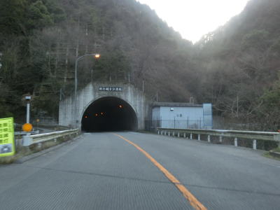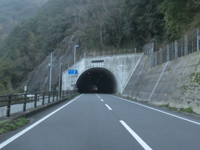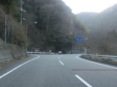 | 東川町集落からは集落がなくなり石手川沿いの谷筋を走る。相変わらず勾配やややきつく、急カーブを含めむカーブが多い状態である。愛媛r178交差点を通過して少し走ると大井野町集落を通過する。松山市側の最後の集落である米野町集落を通過するが、家屋のほとんどは旧道沿線に建っており集落の背後を通る感じである。米野町集落を通過してから勾配が急になるという事はない。 r40交差点から約13.8kmで市境の水ヶ峠トンネルの坑口に至る。1997年(平成8年)に開通した水ヶ峠トンネルの全長は2804mと長く、開通までは分断区間であった。この水ヶ峠トンネルの開通によって、松山〜今治の往来は海沿いのR196に比べて距離的、時間的に短縮された。 |