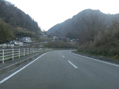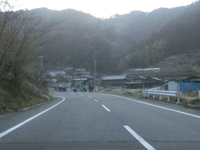 | 白鷺湖から石手川に変わった所で玉谷町の集落を通過するが、その大部分は現在の国道沿線ではなく少し離れた位置にある。日浦トンネルをくぐると一旦集落が途切れるが、すぐに次の藤野町や水口町集落付近を通り、案内標識にも表記されていた河中町集落を通過する。 | ||