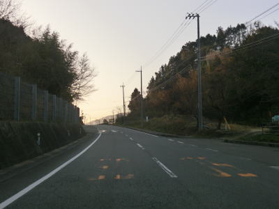 | 7.市道との交差点を直進 | 8.市道との交差点からは道路状況が貧相になる | 9.突き当たりを右折 |