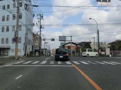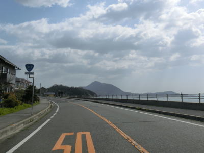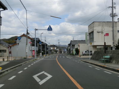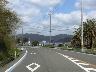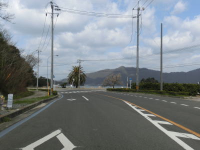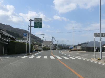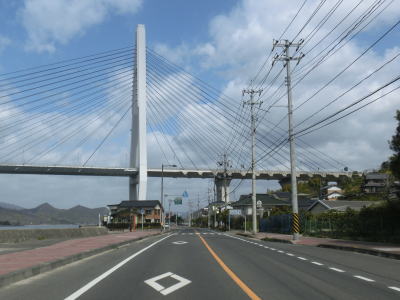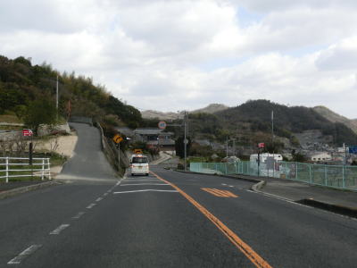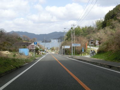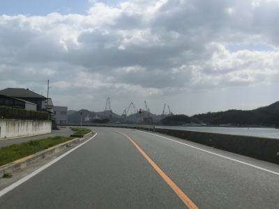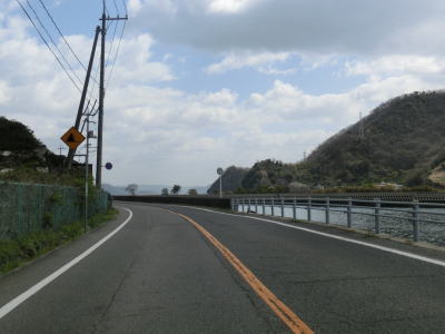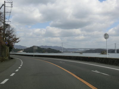 | 広島r366交差点からは大川の河口を走り大楠山の裾を回り込むようにして左にカーブしていると前方に因島大橋が見える。中浜港を擁する因島大浜町集落を通り抜けているが、交通量はだいぶ少なくなっている。 | ||