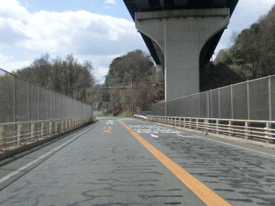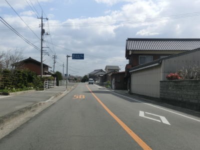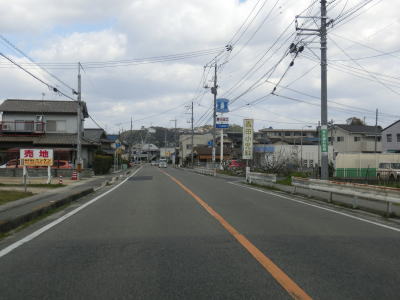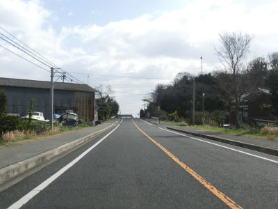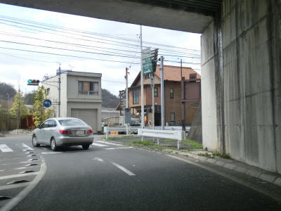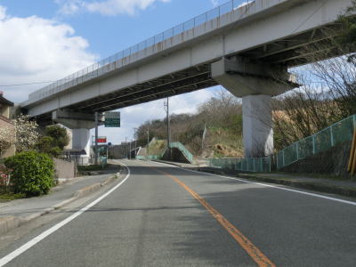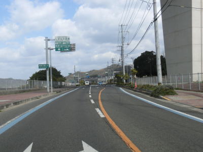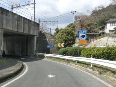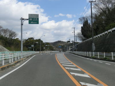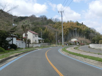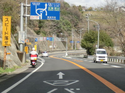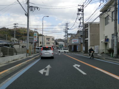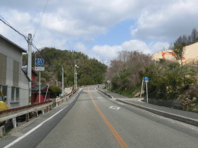 | 因島大浜町の集落としての中心部を通り過ぎると上り勾配となり、西瀬戸道をくぐる辺りで下りに転ずる。下り勾配の直線道路を走っていると因島大橋の歩行者・自転車道との交差点を通過する。R317に直結しており4輪車や125cc以上の2輪車は右折すらできない。 | ||