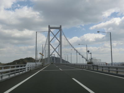 | 147.多々羅大橋の下をくぐる | 148.正面に見えるのは岩城島 | 149.県が変わっても道路状況は変わらない |