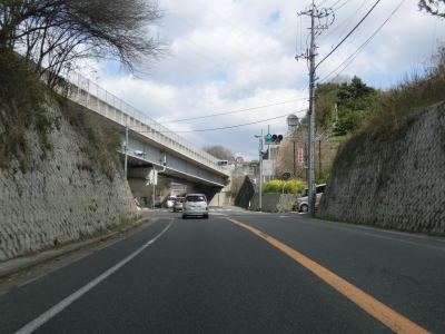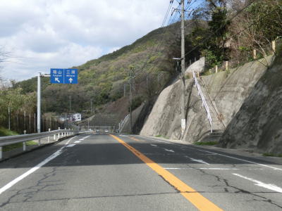| 広島r377交差点からは海から離れて中谷川の流域を東に進む。上りではあるが勾配は非常に緩やかである。進むにつれて多少勾配がきつくなるが、それでも一般的に言えば緩やかと言える範疇である。勾配を上り切った所で西瀬戸道の向島ICを通過する。向島で唯一のインターチェンジで南北どちら側とも接続しているフルインターチェンジである。 | ||