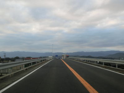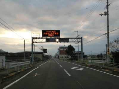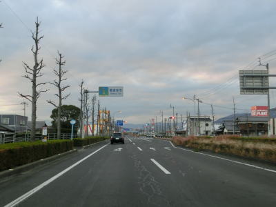 | 善通寺大橋で金倉川を渡った後に香川r24西原北交差点を通過する。r24も片側2車線で多くの車両が右折していったため、以降の交通量はさらに少なくなる。緩やかな右カーブを曲がった先で香川r22与北橋西詰交差点を通過して金倉川の左岸を少しだけ走る。 | ||