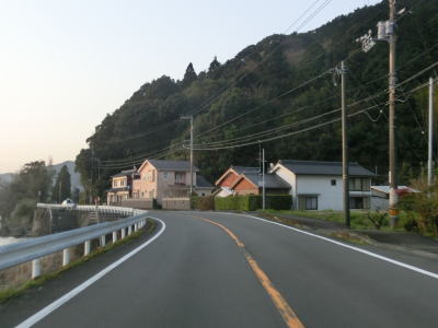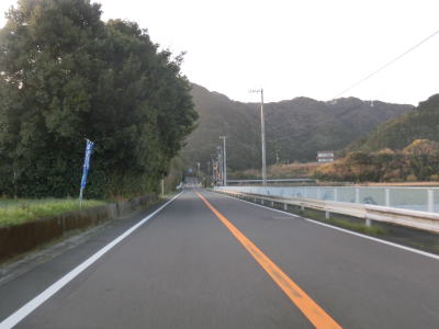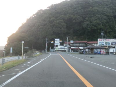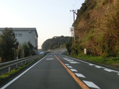 | 林道との交差点からは平坦かつ直線的な2車線道路を走るが、左にカーブすると同時に上り勾配となり再び沿岸部を走る。下港山集落を走っていると下り勾配に転じ、下り切った所でR321以布利バイパスと現道との交差点に至る。今回は左折して現道へと進んでいる。 | ||
