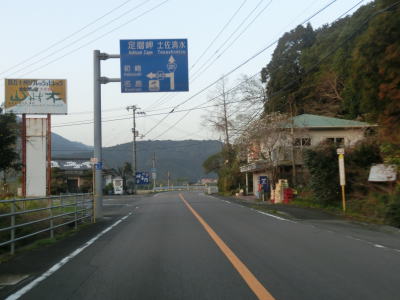 | 13.高知r343交差点 | 14.農免農道を少し入った所に大文字の送り火がある | 15.「足摺岬38km 竜串(林道経由)28km 土佐清水24km」 |