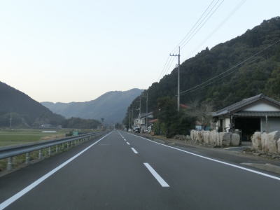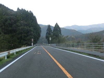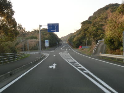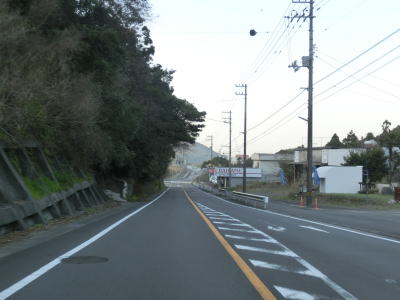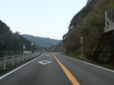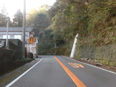 | 現道に進むと意外にもセンターラインがはっきりと描かれた2車線道路が続いている。以布利集落に入っても2車線を維持しており、多少カーブが多いのは気にならない。集落の主要部を通り過ぎると上り勾配となるが、その勾配は緩やかである。 | ||