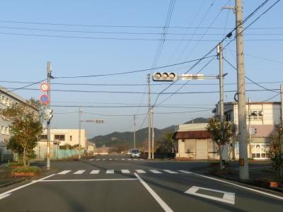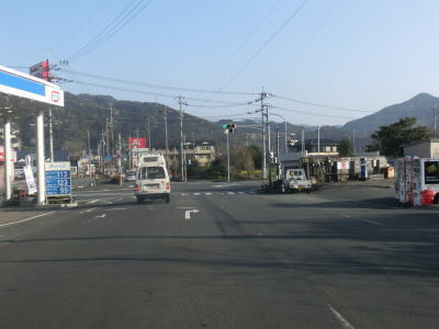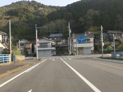 | 松田川橋を渡って勾配を下った所で高知r354との交差点に至るが、R321は右折して宿毛市街方面に進む。直進は市道だがすぐ近くの宿毛駅に至るルートとあって直進する車両も多く、案内標識がなければ真っ直ぐ進んでしまっても何ら不思議はない。左折のr354にはフェリー港があり、大分県佐伯市までの便が設定されている。 | ||