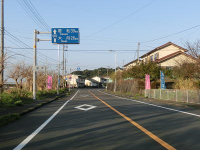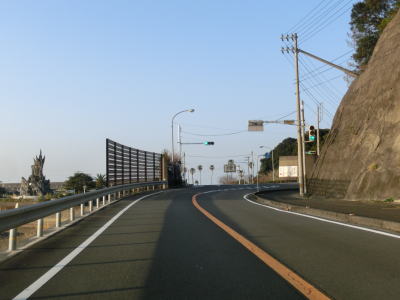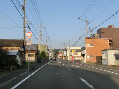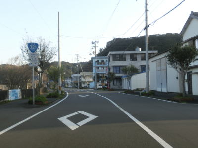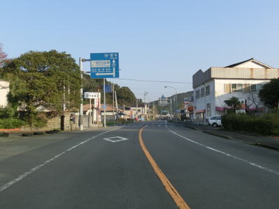 | 高知r27交差点を右折して土佐清水市の市街地を走り抜ける。市街地を走ってが狭いながらも歩道付きの2車線道路であり狭苦しさは感じられない。約1.3km進むと市道との十字路を右折する。その後はあしずり港にに沿って走っており、沿線に建物が少なくなるせいもあって走りやすい2車線道路になる。 | ||
