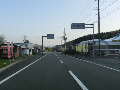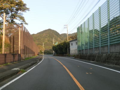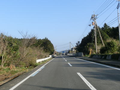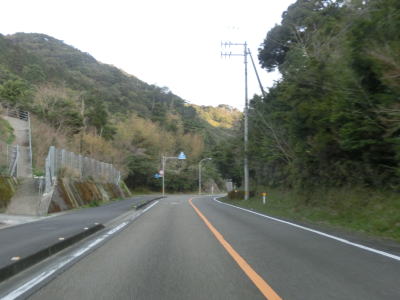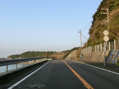 | 松崎海岸を走っていると砂浜部分が終わると上り勾配となり海面との高低差が生じる。家屋が点在する荻窪集落を通り過ぎると右にカーブして一旦内陸部に進む。おそらく海岸部分の地形が険しく道路を通す事ができないため内陸に迂回しているのだろう。 | ||