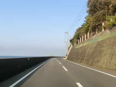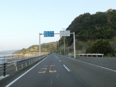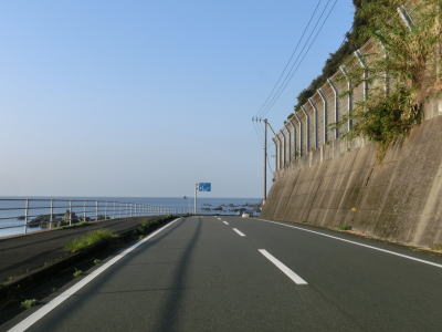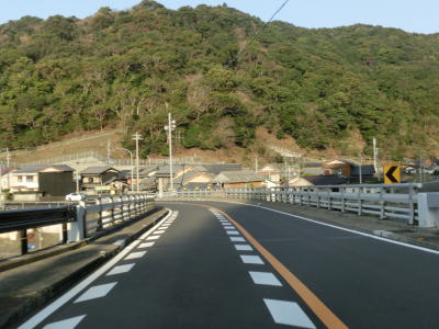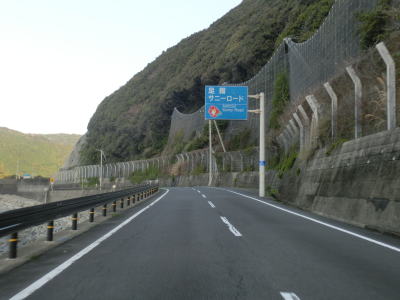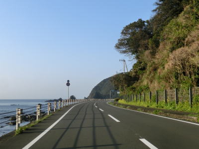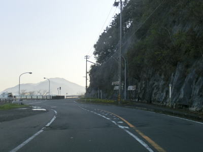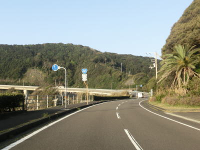 | 加久見川の左岸を走っていると大阪では見慣れたコーナンを通過する。ちなみに宿毛市のR56・R320・R321交差点付近にもコーナンがある。コーナンから程なくしてやや急な勾配を上ってから加久見橋を渡る。しばらく平坦な状態を走った後に左にカーブしたからな勾配を上り、その先で右にカーブすると沿岸部を走る。これまでの沿岸区間とは異なり海との距離が近くシーサイド国道感がようやく味わえる。 | ||