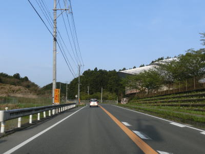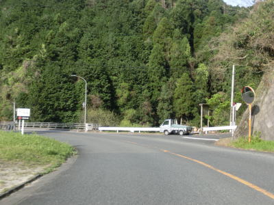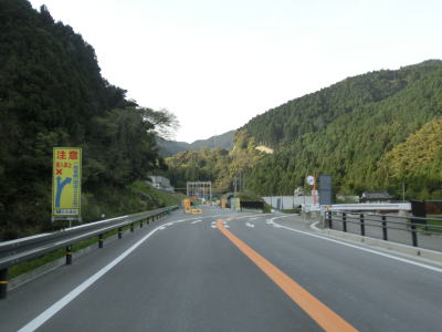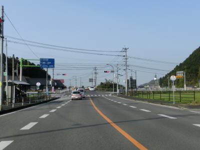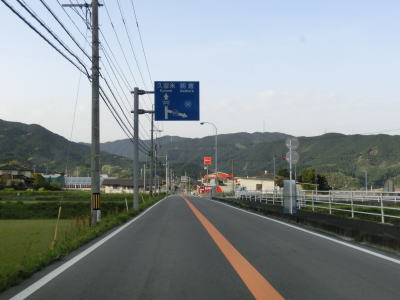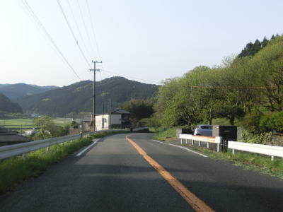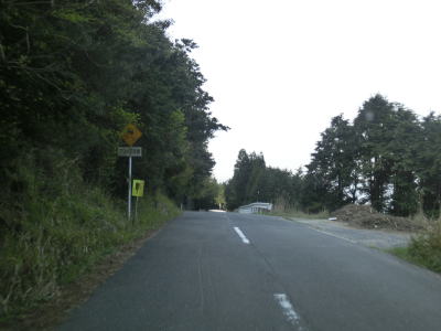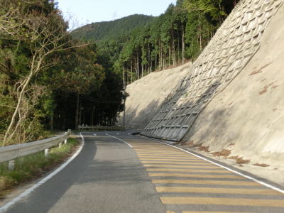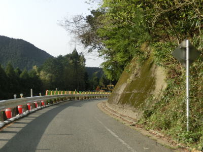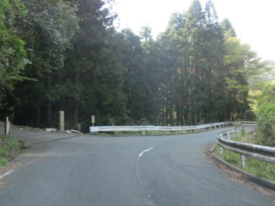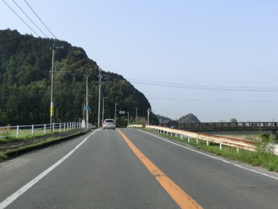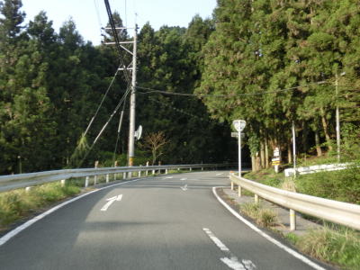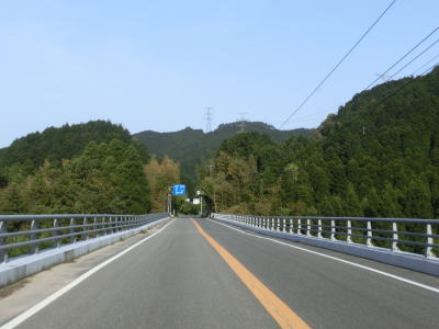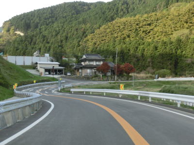 | 再び緩やかな上り勾配となるが道路状況は走りやすい2車線道路のままである。大隈交差点から約5.9km走ると右カーブを通過するが、その正面には八丁峠道路が建設中である。2015年4月の時点では供用されていないため、右カーブを曲がってからS字カーブを描きながら勾配を下る。 | ||