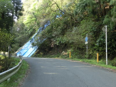 | 83.カーブ2付近の法面は小崩落 | 84.法面補修箇所付近にはセンターラインあり | 85.高畑集落に至る市道(?)と交差 |