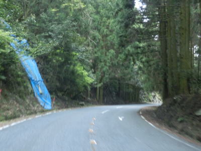 | 80.旧八丁峠区間は連続雨量170mm超で通行止になる | 81.小刻みなカーブが連続 | 82.センターラインがなくなる |