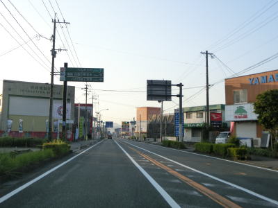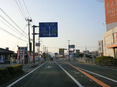 | 西鉄天神大牟田線のガードのすぐ傍のR3・R209・R322東町交差点がR325の起点だが、R3に重複しているため案内標識におにぎりは表記されていない。北にR3、南にR3・R325、西にR209、東にR322となっている。現在のR322にかつてはR210が重複していたが、バイパスの供用に伴って約1.4km北の東櫛原交差点に起点が移動している。また、約900m西の六ツ門交差点はR264の終点の交差点である。 東町交差点から南に向かってR3との重複区間を走り始めるが、西鉄久留米駅のすぐ近くとあってタクシーが多かった。昼間であれば車両だけでなく歩行者や自転車も多い場所であろう。比較的大きな駅に近い幹線国道の割に対面2車線と道路状況は貧弱と言える。1〜2km程度西を並走しているR209が多車線道路でR3のバイパスとして機能しているのかもしれない。 |