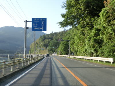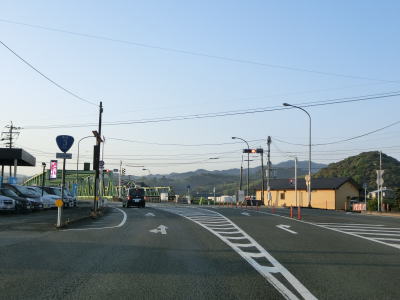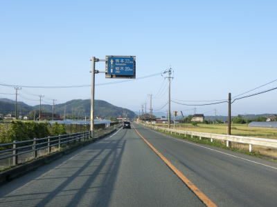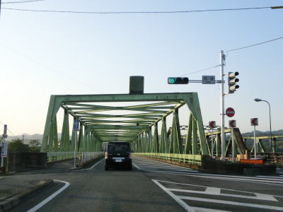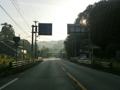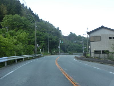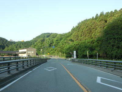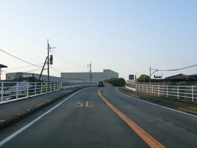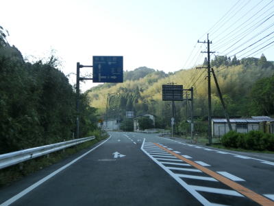 | 工業団地入口交差点を過ぎてすぐは急なカーブが連続しているが走りにくく感じる程ではない。福岡r84の現道との川瀬交差点を通過するが、この交差点から少し東に行くと弘川町役場がある。おぎしま橋で広川を渡ってすぐに市町境を通過して八女市に入る。境標識の手前に八女市と書かれた補助標識のあるおにぎりが立っているが、境標識が立っている場所が市町境である。 | ||