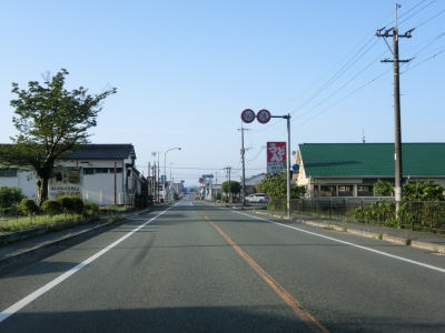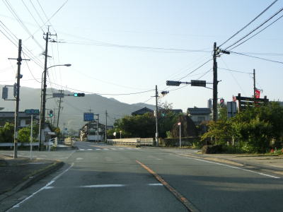 | 直線道路を走っていると池田橋の前後でS字状のカーブを曲がり、以降は真南に向かって進む。旧道と思われる熊入交差点を通過すると沿線に商業施設が増え始め、山鹿市の市街地に近付いている事が分かる。 | ||
