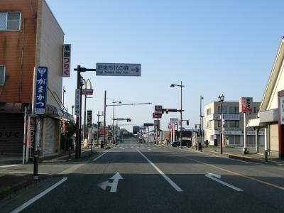 | 46.「熊本32km 植木20km」 | 47.熊入交差点 | 48.山鹿市の中心部に近付く |
