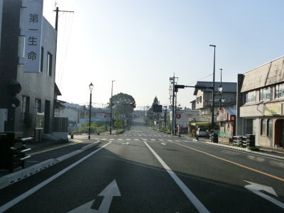| 中央通り交差点からはR3から分岐してR443が重複している状態となり、山鹿市の中心部を東の方角に向かう。市街地を通っていながら緩やかとは言えアップダウンが多い。沿線の家屋は多いが改良された2車線道路のため走りにくさは感じない。 | ||