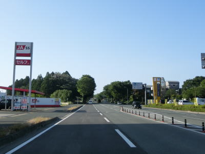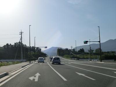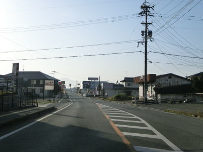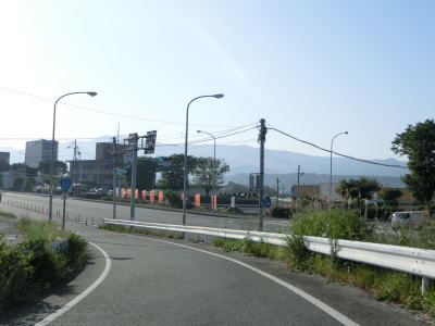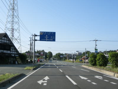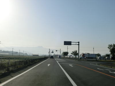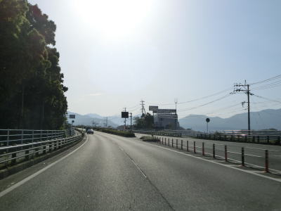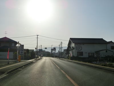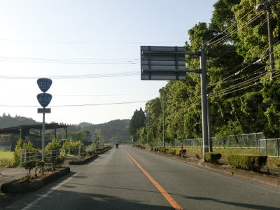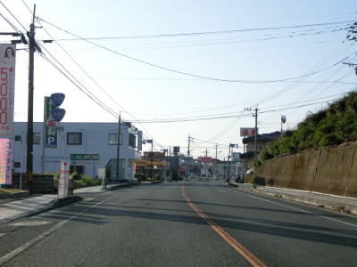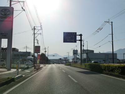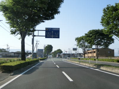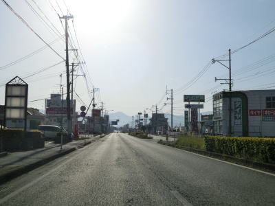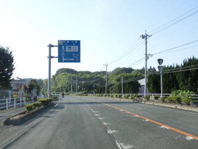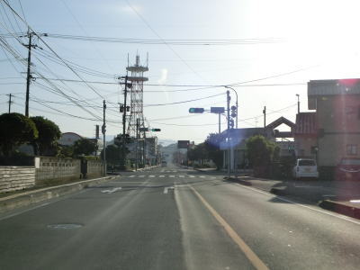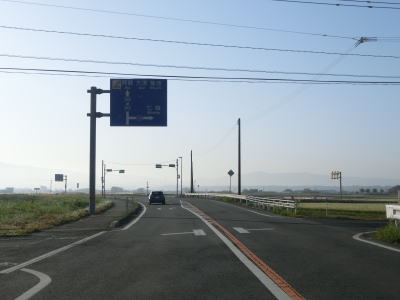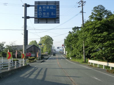 | 2ヶ所目の熊本r329交差点からは上り勾配となり、その後下りに転じた後に市町境を越えて大津町に入る。関西在住者としては“おおつ”と読みたくなるが、“おおづ”が正しい読み方である。熊本r49交差点を通過して少し走ると緩やかな右カーブを曲がる。 | ||