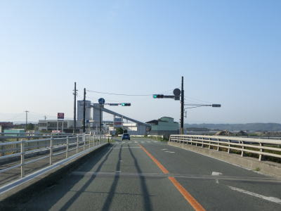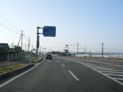 | 水島橋を渡り終えて緩やかな勾配を下った先で熊本r37交差点を通過する。その後熊本r139辺田交差点を通過してから少し走ると道の駅「七城メロンドーム」を通過する。所属する自治体が異なるとは言え、「水辺プラザかもと」との距離は僅か1.6km程度である。 | ||
