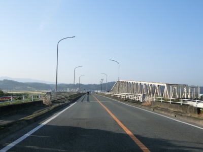 | 北原交差点から約400mで大琳寺交差点を通過するが、ここで交差している市道は東西を結んでおり市街地を通っているR387の迂回路としても利用できる。菊池橋を渡るが、下流側に架かっているトラス状の橋は北向き車線の橋でもなければ歩行者用の橋でもなく水道管の橋である。田畑の中を走っていると緩やかな左カーブの後に熊本r139赤星交差点を通過する。 | ||