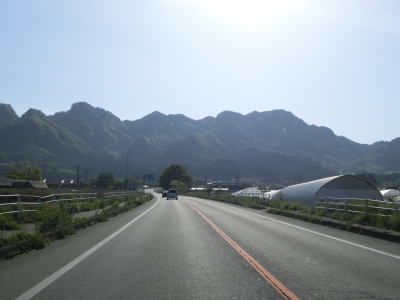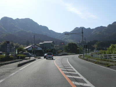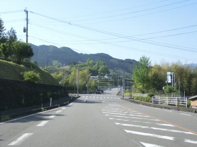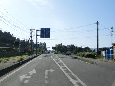 | 見通しの良い快走路を走っていると高森町に入り、程なくして町役場の南を通る。南に向かうと南阿蘇鉄道の高森駅がある。阿蘇の外輪山を正面に見ながら平坦な2車線道路を走る。 | ||