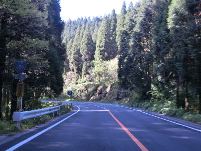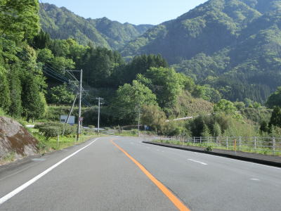 | 熊本r212交差点からも緩やかなアップダウンのある2車線快走路を走る。沿線の家屋はほとんど見られないが柳川沿いの町道などには集落が存在しており、それほど人里離れた場所ではない。7%とやや急な勾配を下ってから少し走るとヘアピンカーブを含む急カーブが多くなる。 | ||