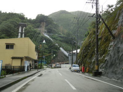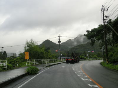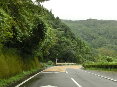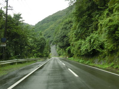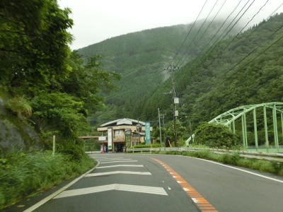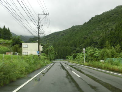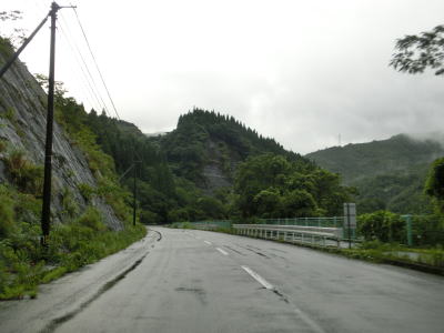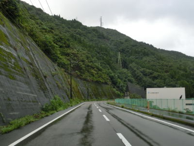 | 諸塚村に入ってからも耳川沿いの2車線快走路が続いており、交通量も非常に少ない状態である。左にカーブしている諸塚トンネルを出た直後に山須原ダムの北側を通過する。ここで貯められた水が山須原発電所まで引き込まれて発電に使われている。 | ||
