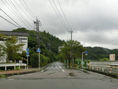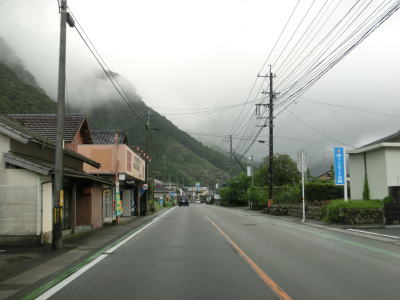 | 旧東郷町の中心部を通り抜けるが、道路状況はこれまでと変わらない2車線道路であり市街地だけ狭苦しいという事もない。耳川に沿って大きく右にカーブして市街地を脱し、平坦な2車線道路を走る。 | ||
