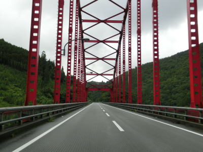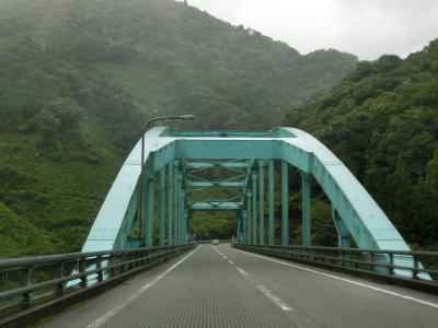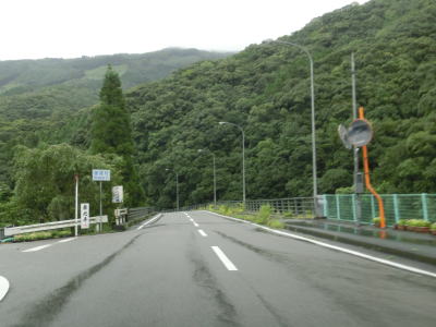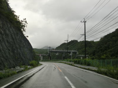 | 山須原集落を通過し、耳川沿いをさらに走っていると荒谷橋を渡って諸塚村に入る。橋を渡り終えた直後に左の急カーブを曲がり、以降は耳川の左岸を走る。これまでと変わらない川沿いの2車線快走路が続いている。 | ||