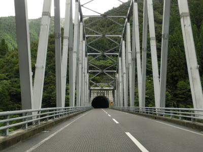 | 西を流れている五ヶ瀬川はかなり蛇行しているが、R327(実質R265)は改良されており線形が良いので走りやすい。やや急な左カーブを曲がって勾配を下った後に三河橋を渡ると上りに転じて右カーブを曲がり五ヶ瀬川の右岸を走る。 | ||