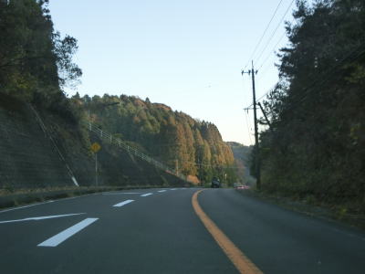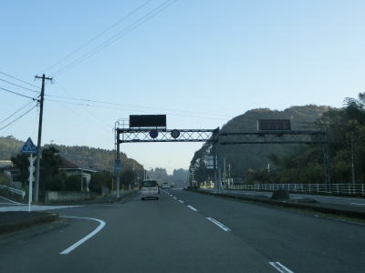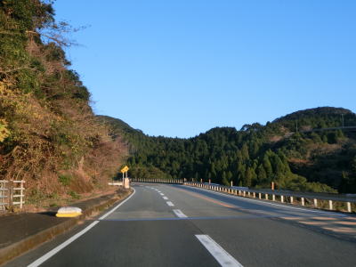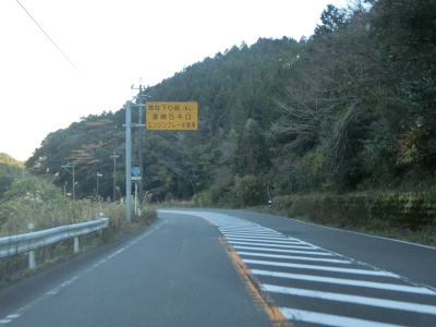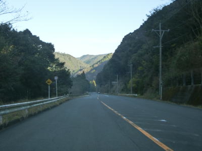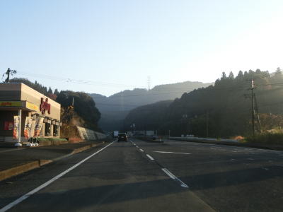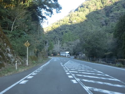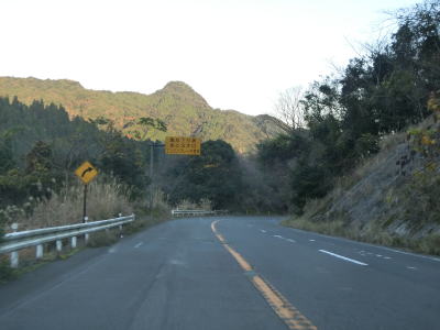 | 2ヶ所目の登坂車線が終わった直後は上り勾配主体の2車線道路が続いている。3ヶ所目の登坂車線は延長が2.4kmとかなり長く、曲線半径が大きく取られたヘアピンカーブも2つ含んでいる。登坂車線が終わった直後に入来峠を越えて薩摩川内市に入る。峠の標高は400mと意外に高い。 | ||