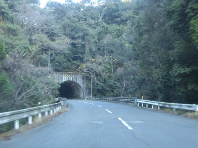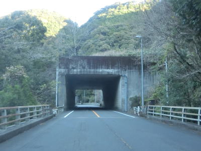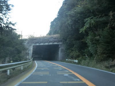 | 55.旧道(?)との交差点の先に急カーブあり | 56.鍋野川の谷筋を走る | 57.定之段トンネル |