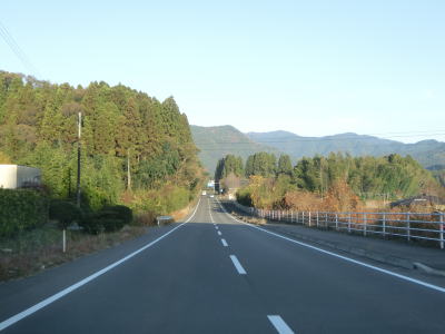 | 鍋野川に沿った谷筋を走っており、多少急なカーブもあるが緩やかなものの方が多くそれなりに走りやすい。東側に並走している道路があるがおそらく旧道と思われる。第2定之段橋と第1定之段橋を渡ってから定之段トンネルをくぐる。 | ||