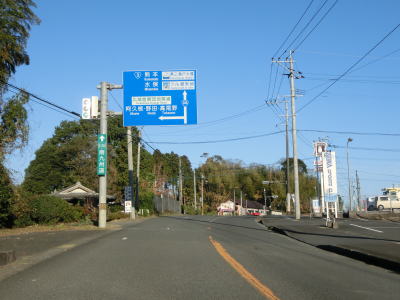 | 日之丸交差点からも走りやすい2車線道路が続いている。やや急な右カーブを通過するが、そこに接続している市道は旧入来町の中心部と通っており、おそらくは旧道と思われる。それを裏付けるように交差点から先は沿線の建物は少なく道路状況も良くなる。旧入来町の中心部の北で鹿児島r346交差点を通過するが、これも旧道の一部かもしれない。 | ||