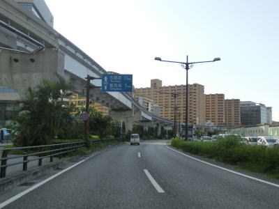 | 沖縄県庁や那覇市役所に近く、沖縄県の中心部とも言える明治橋交差点がR329の終点である。交差している国道はR58の1本のみだが、北に隣接する旭橋交差点はR58以外にR330とR390とR507(?)が交差しており、明治橋の南詰にはR331とR332が交差している。明治交差点から東に延びる道路がR329であり、元々は那覇東バイパスとして開通した区間で、現道はR330(とR507?)に変更されており、唯一のR329となっている。 明治橋交差点から走行を開始すると片側2車線と良く整備された道路状況で北側にゆいレールと呼ばれるモノレールが並走している。ゆいレールが道路を横断して南側に移ってから壺川駅の下を通過する。 |