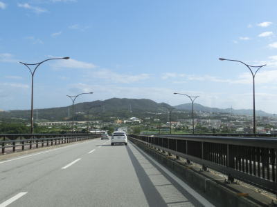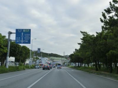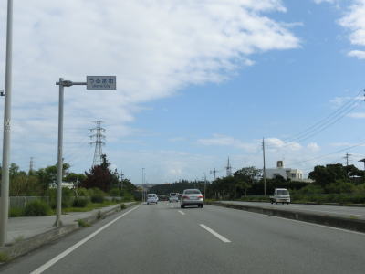 | 吉の浦火力発電所付近からは概ね海沿いと言える場所を走っているが、海岸線からはやや距離があるため道路を走っている限りは海は見えない。カーブが増えるものの緩やかなものばかりでほとんど減速する事もなく通り抜ける事ができる。北中城村に入ってからも同じような状況が続いており、沖縄r81・r227渡口交差点を通過した先で沖縄市に入る。県と同じ名称の市だが県庁所在地ではない。 | ||